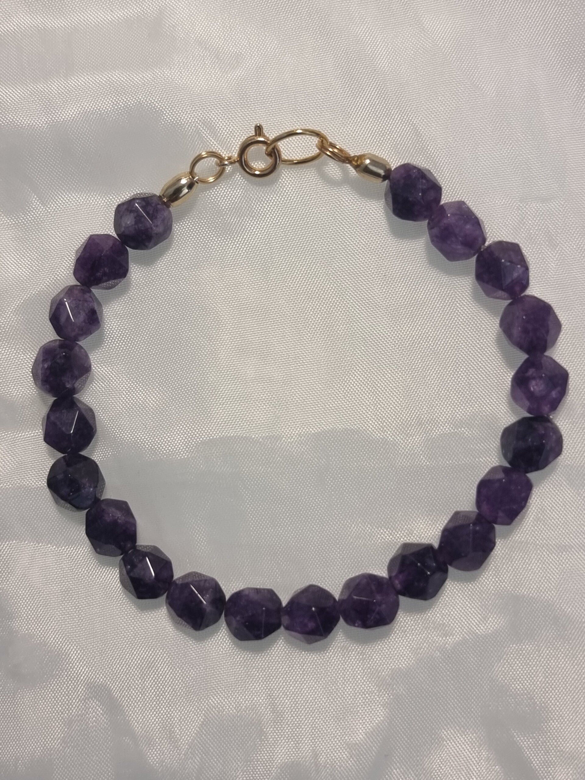 Bracelet en Pierres Améthystes finition par deux séparateur en Or. crochet or réf mpio MM