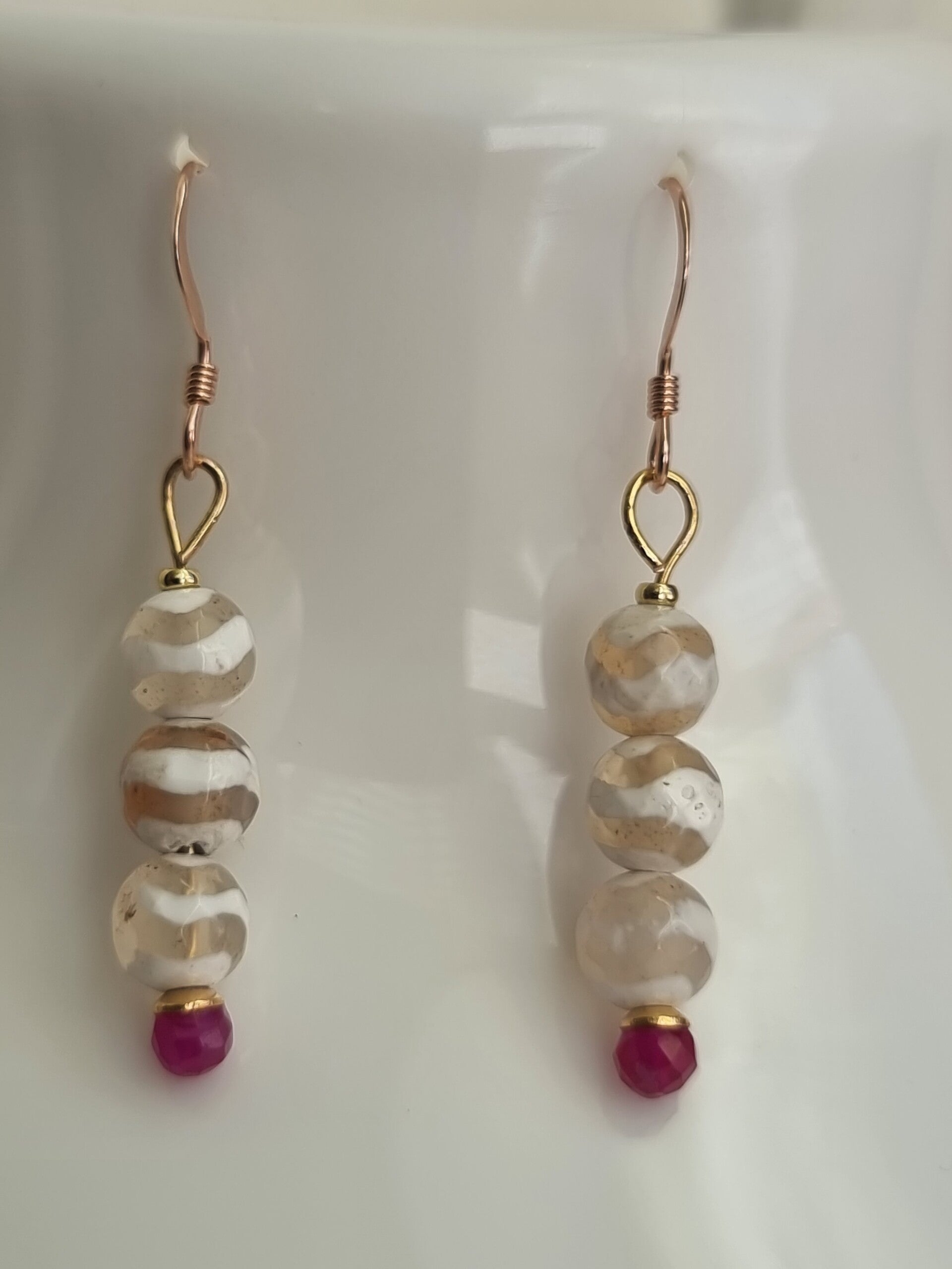 Boucles d'oreilles pierre ágate tibétaine réf. mpi 55.