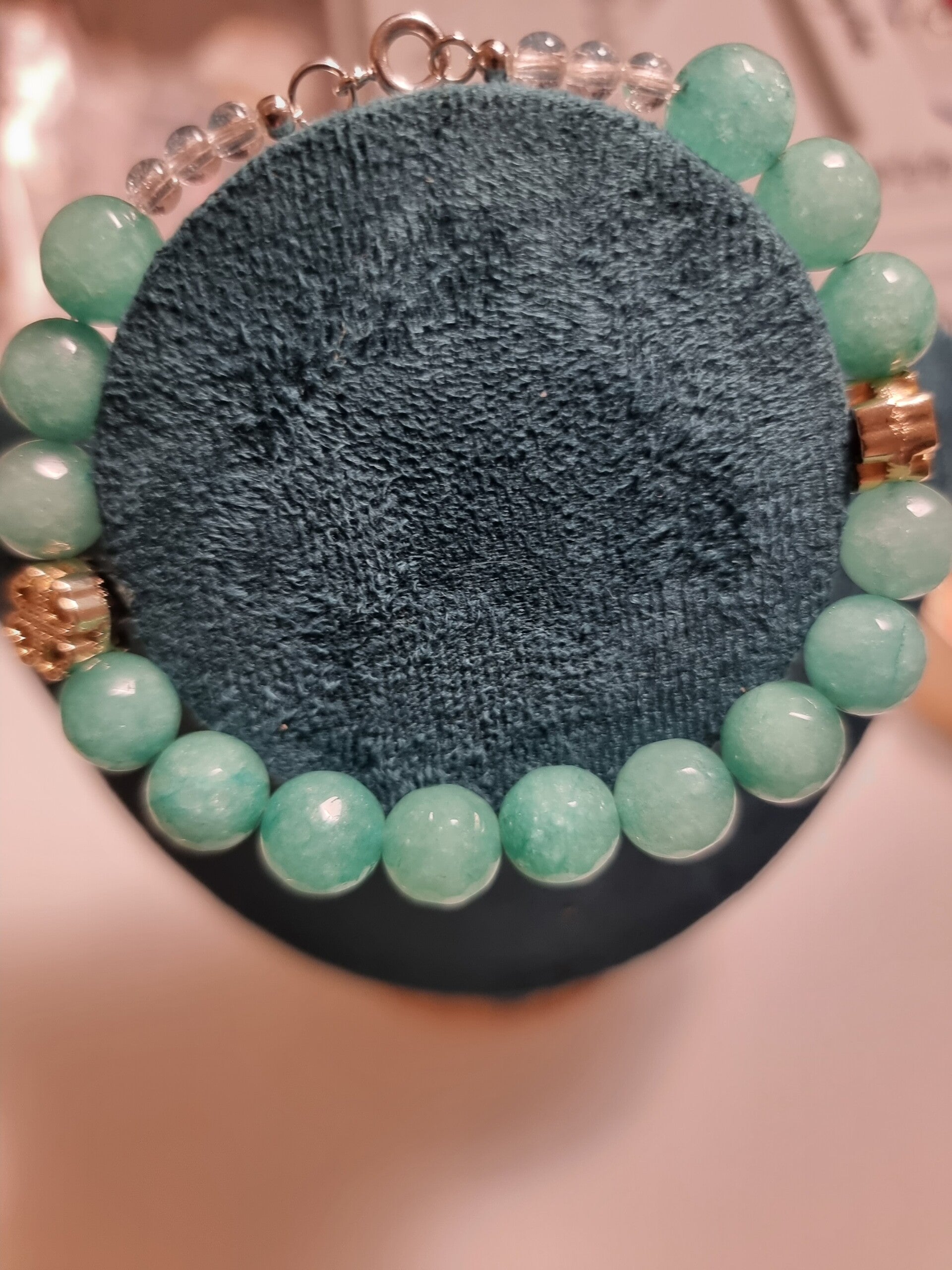 Bracelet pierre agate couleur jade avec deux séparateur trèfle Or