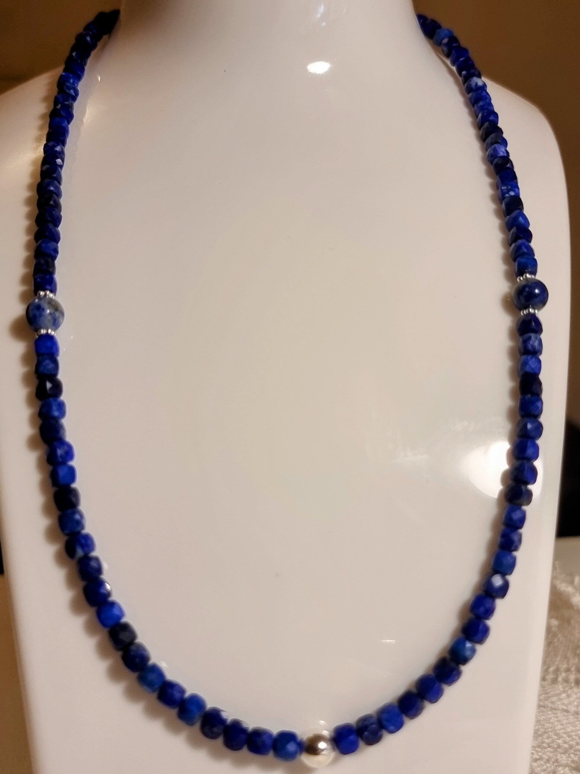 Collier pierre lapis-lazuli avec de séparateurs argent.