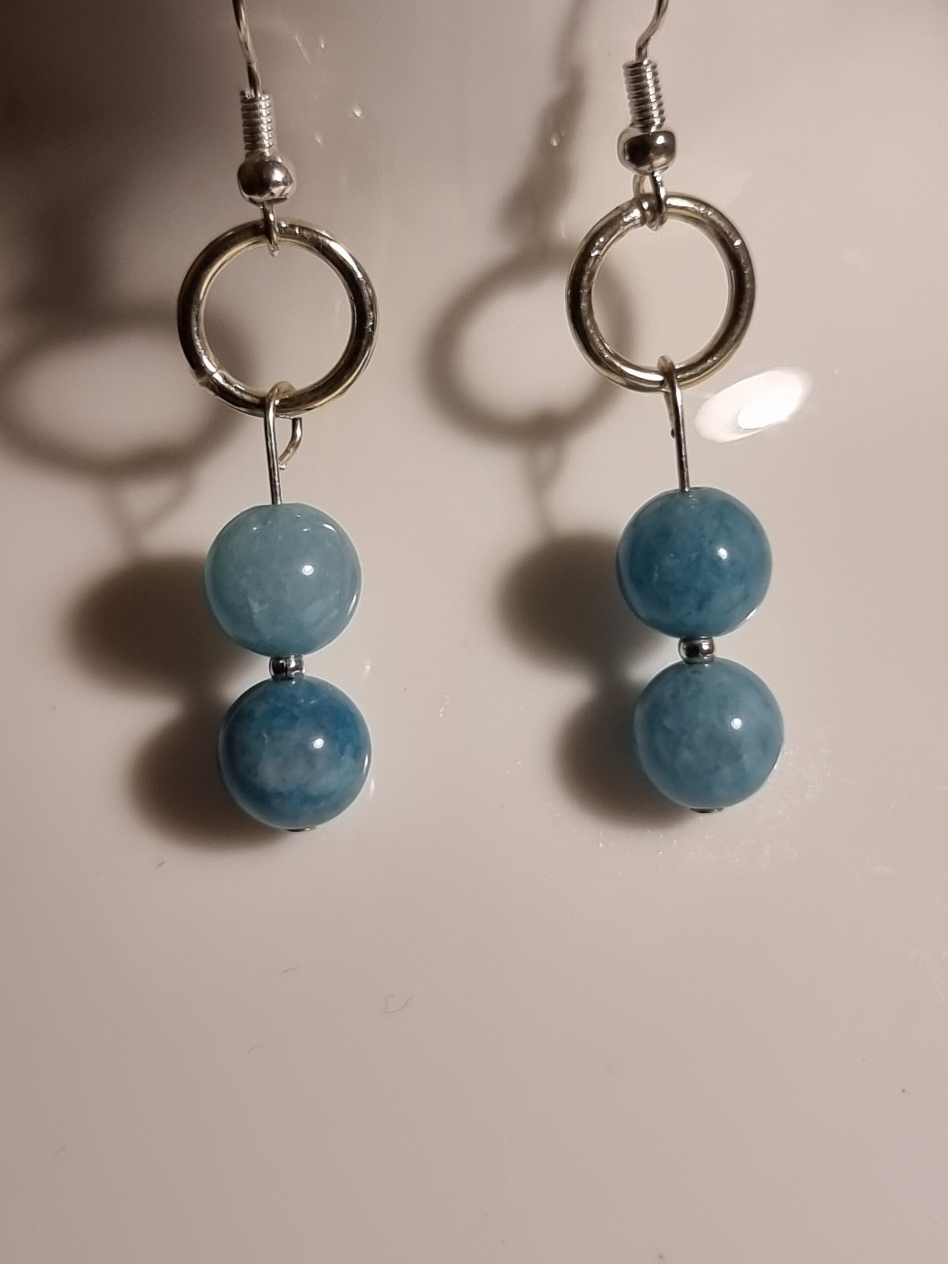 Pendentif ,pierre Jade Blue ,anneau et crochet argent réf.mpi 37
