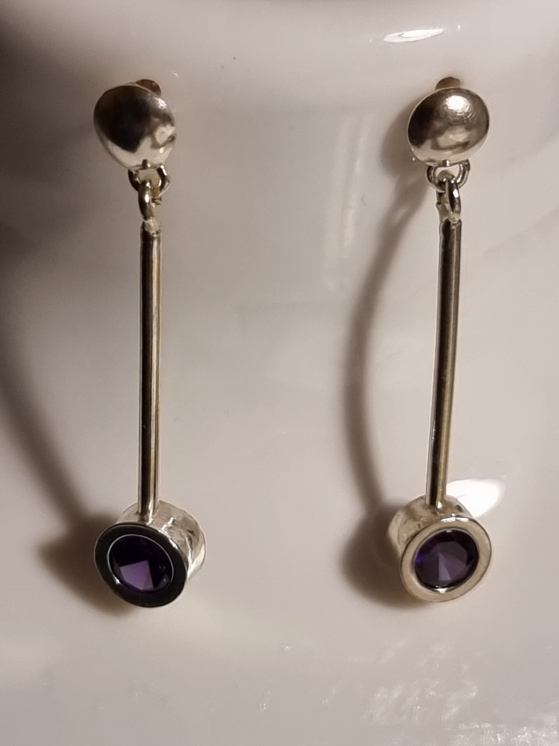 Boucles , Pierre pendentif Améthyste ,argent réf. mpi 26