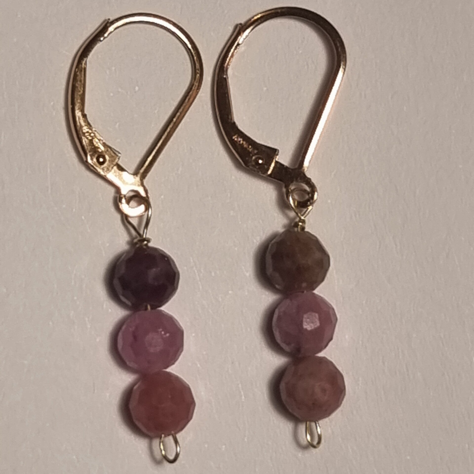 Boucles pendentif pierre rubis ,crochet dormeuse Or. .