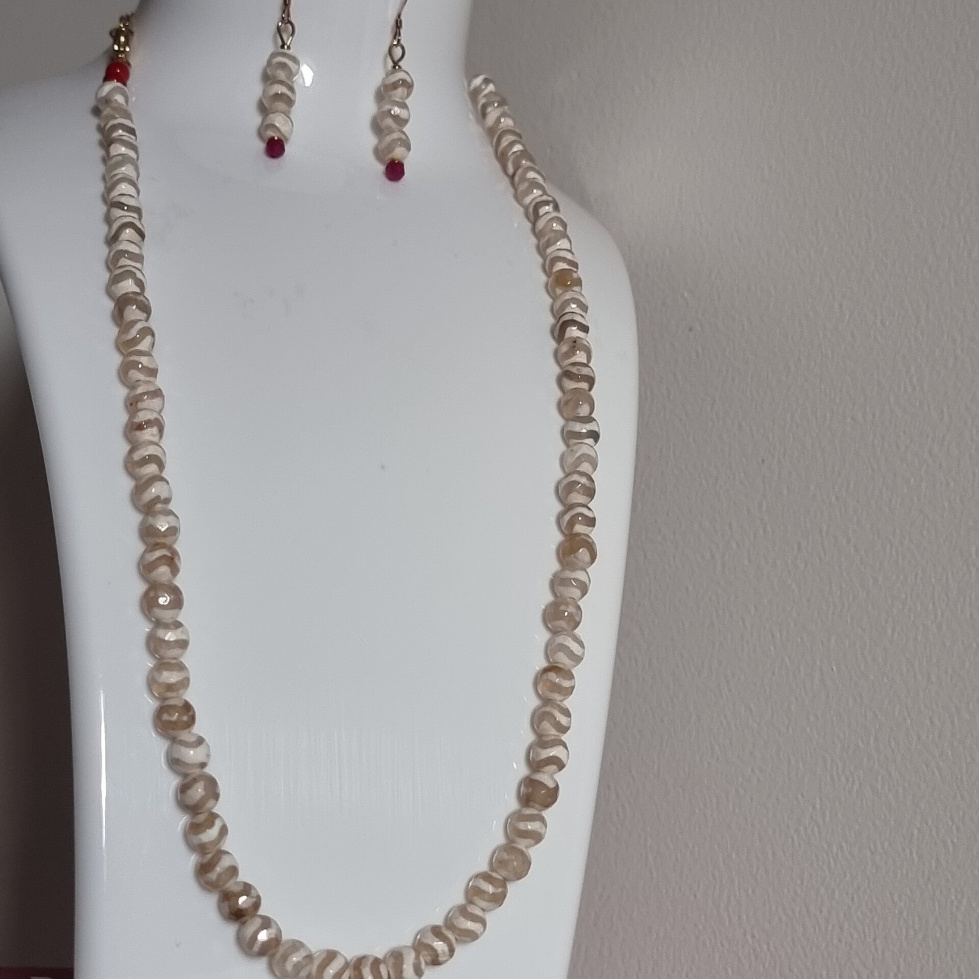 Ensemble collier pendentif pierre ágates tibétaine, décoré corail rouge ,crochet pendentif or.