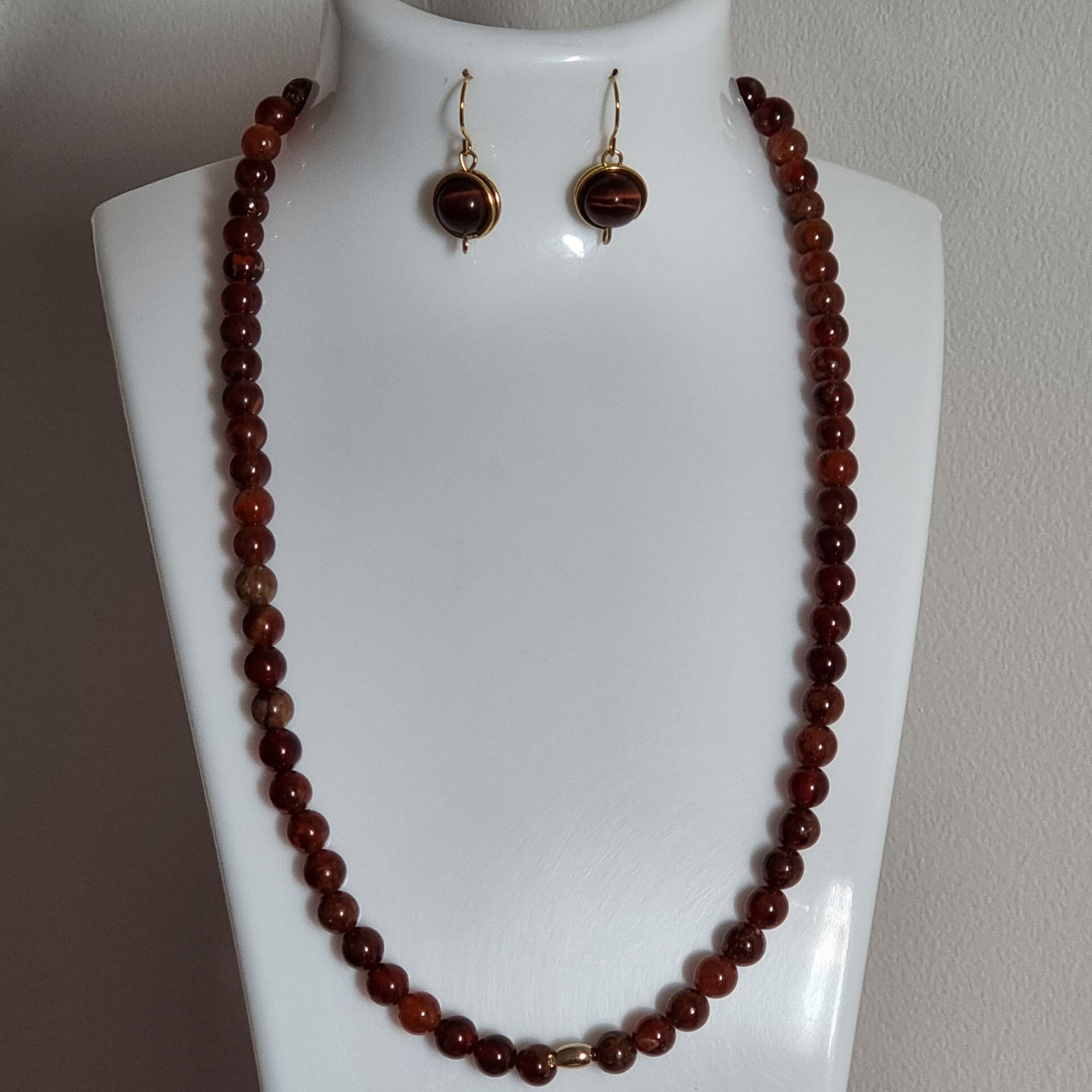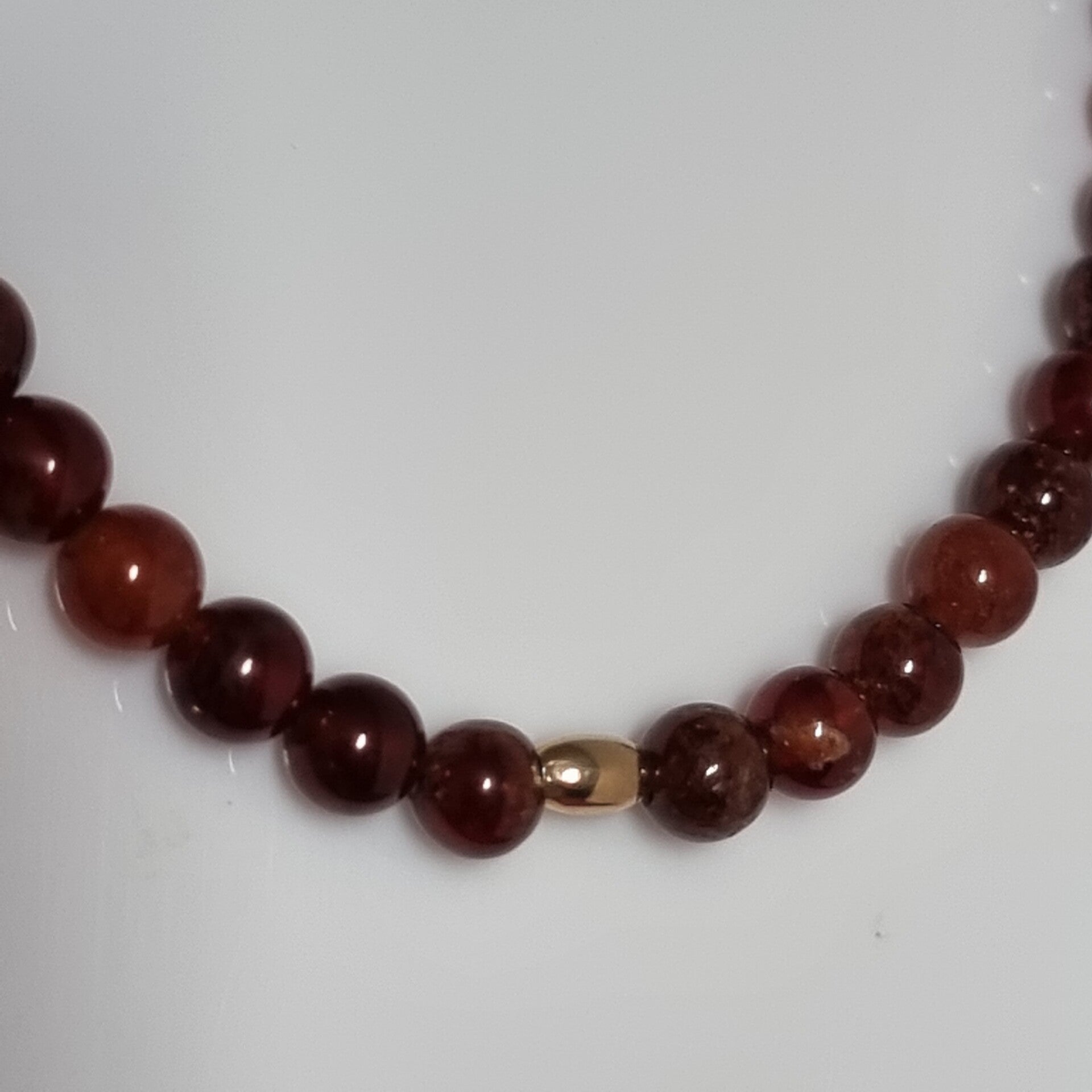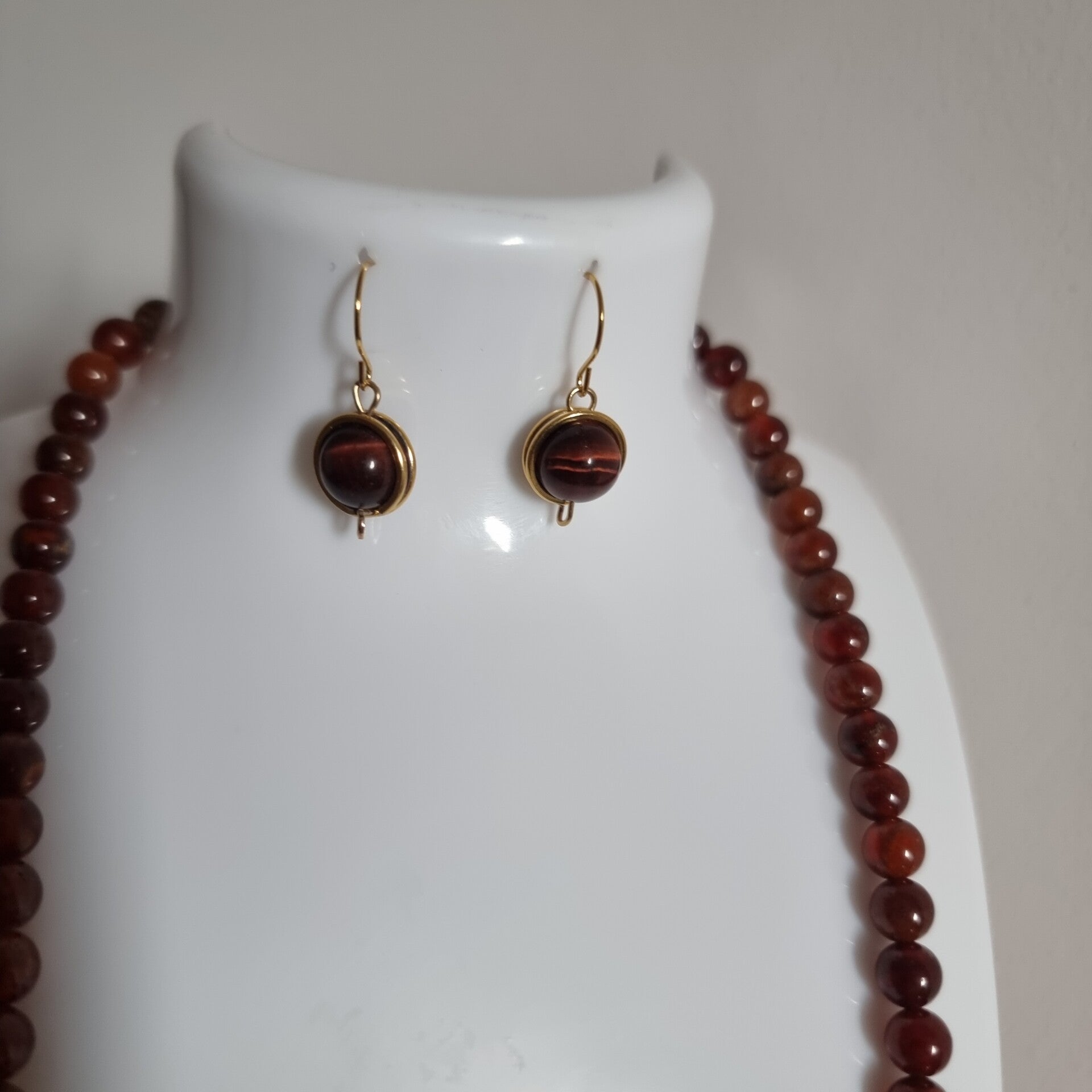 Le collier des pierres grenat contienen un separateur ovale or et finition crochet or .les pierre des boucles son mit dans un anneau doré à l'or .