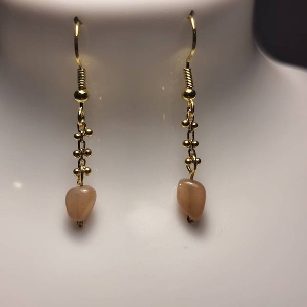 Boucles en chaîne doré qualité avec pendentif pierre de lune réf. mpi 17