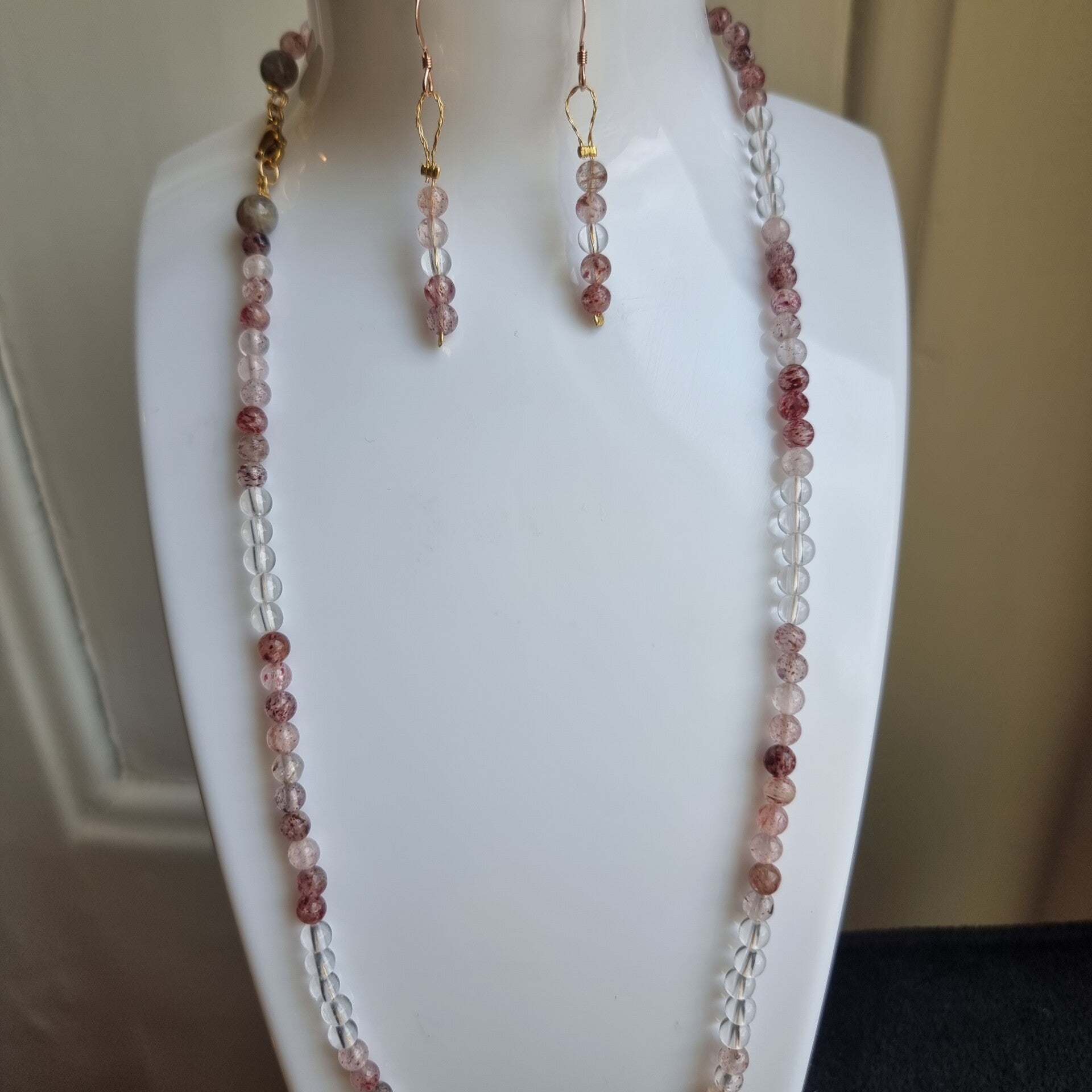 Collier Pierre quartz rose avec decoré quartz blanc ref.mpi 66blanc
