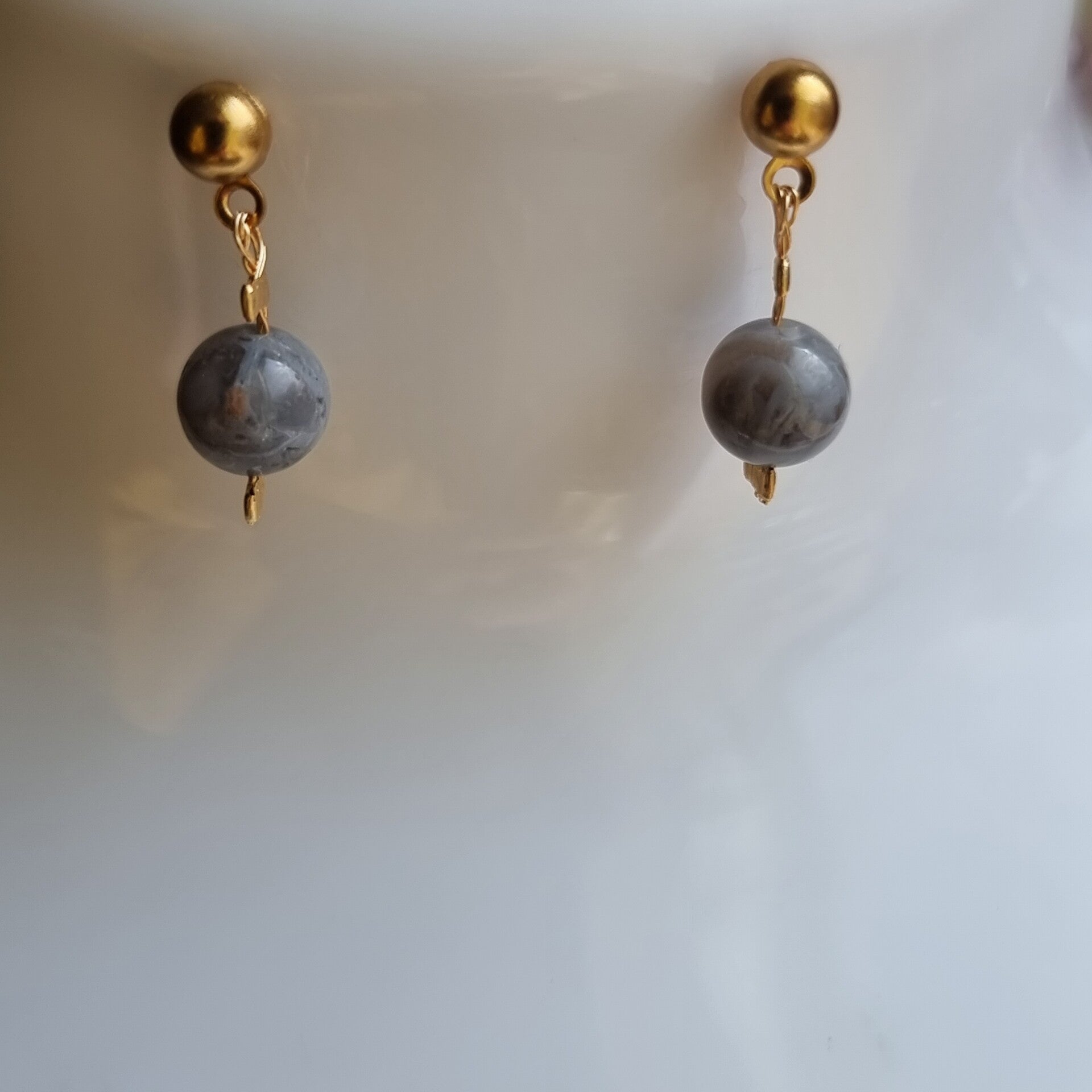 Boucles pierre ágate feuille ,crochet doré or réf.mpi 10