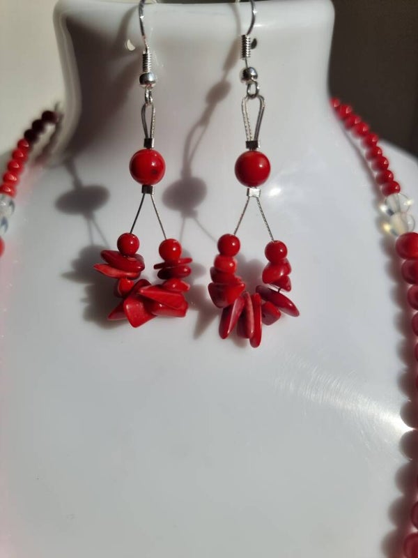 Pendentif en Pierres chips corail bambou ,crochet argent réf.mpi 35
