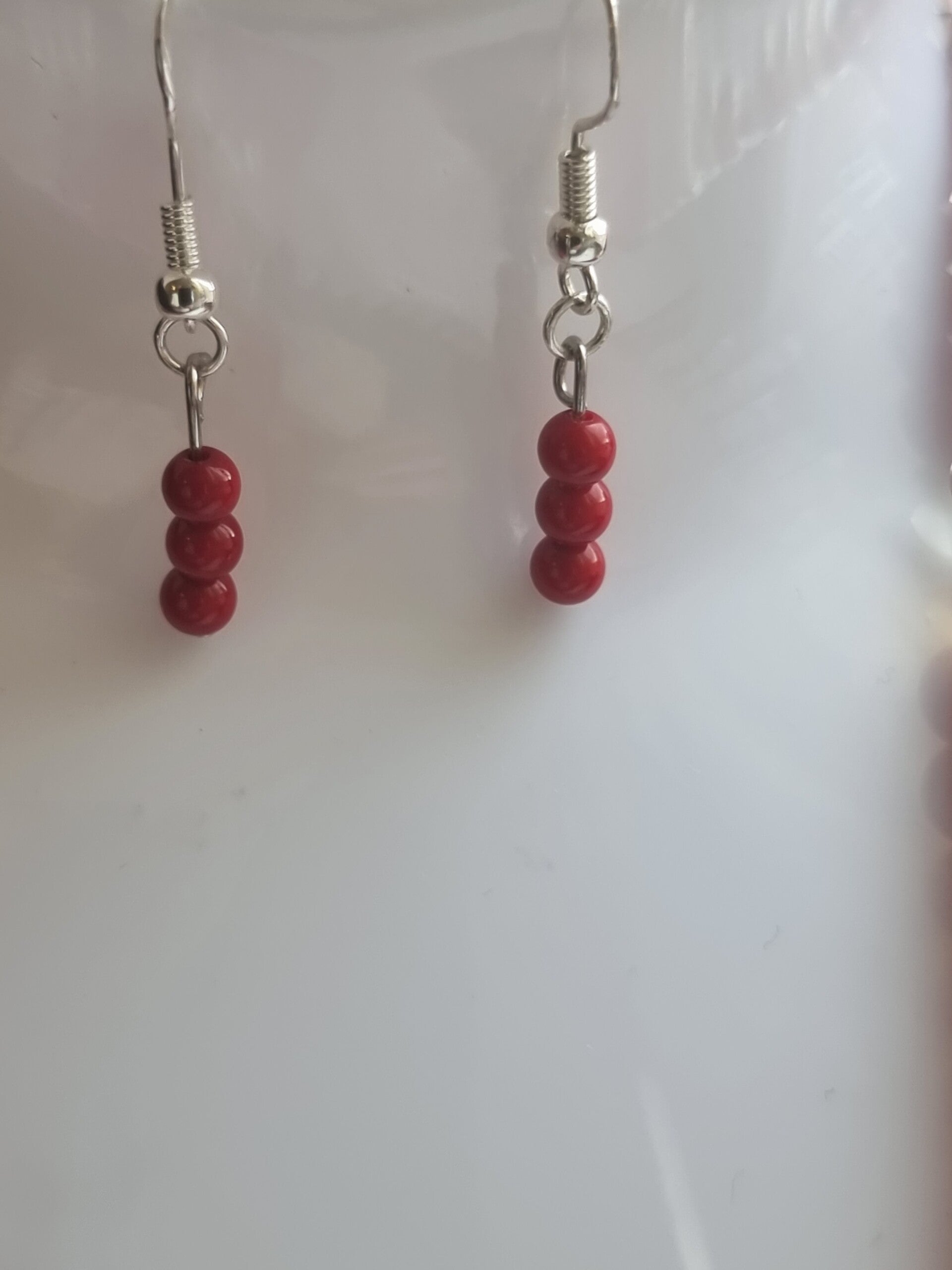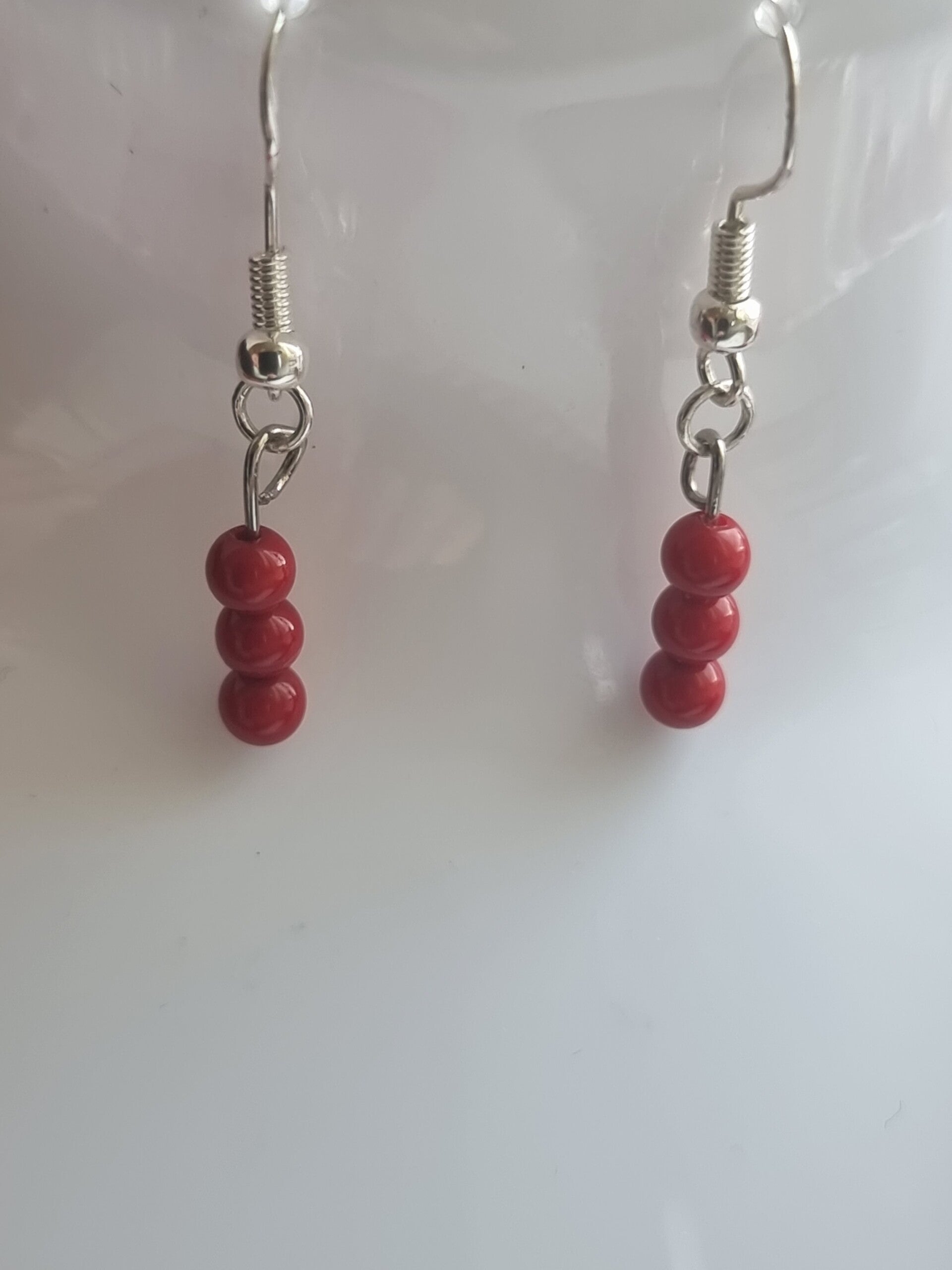 Boucles perles corail bambou 4mm.crochet argent ,réf mpe 42