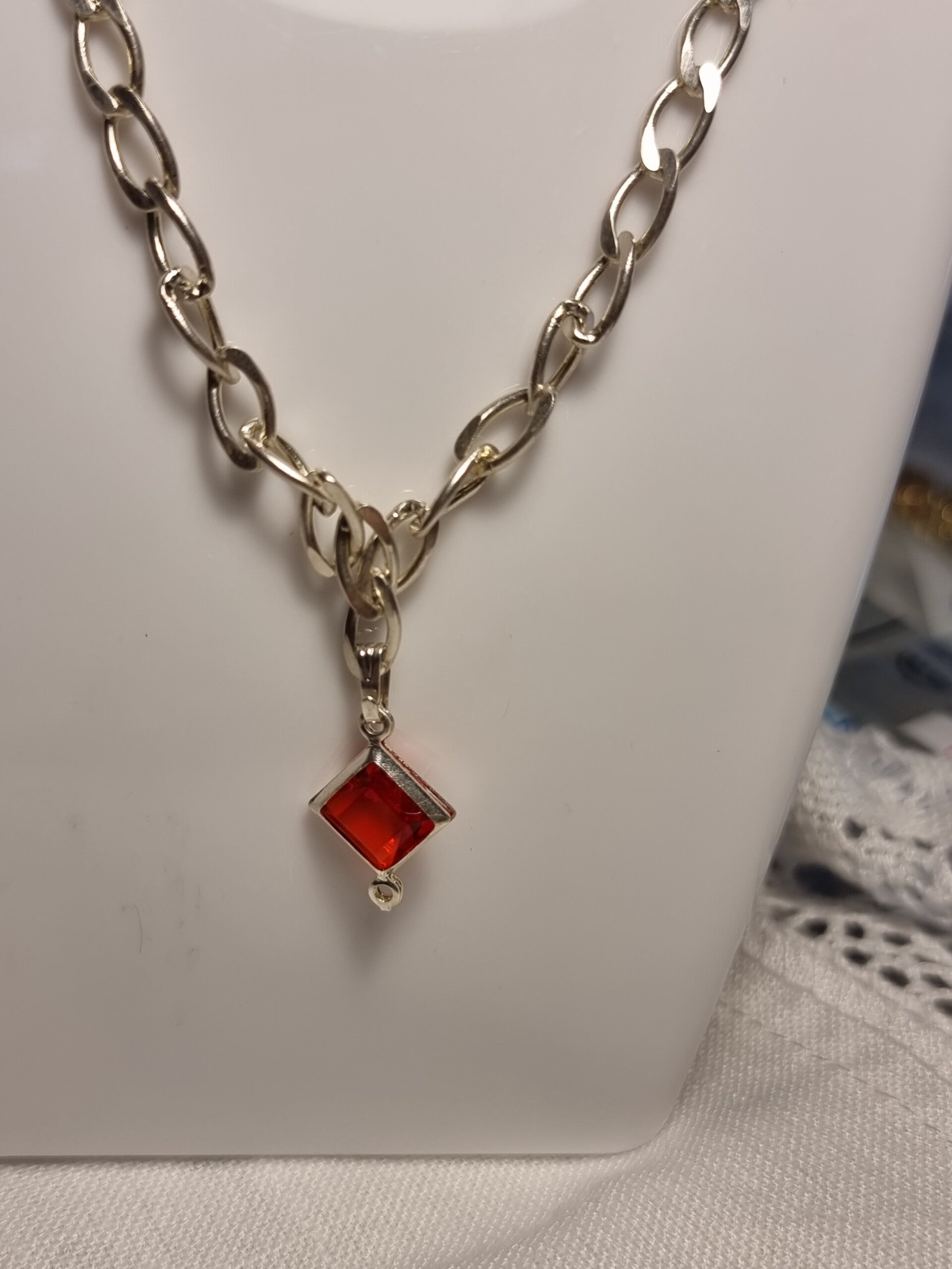 Chaine argent ,pendentif argent cristal rouge