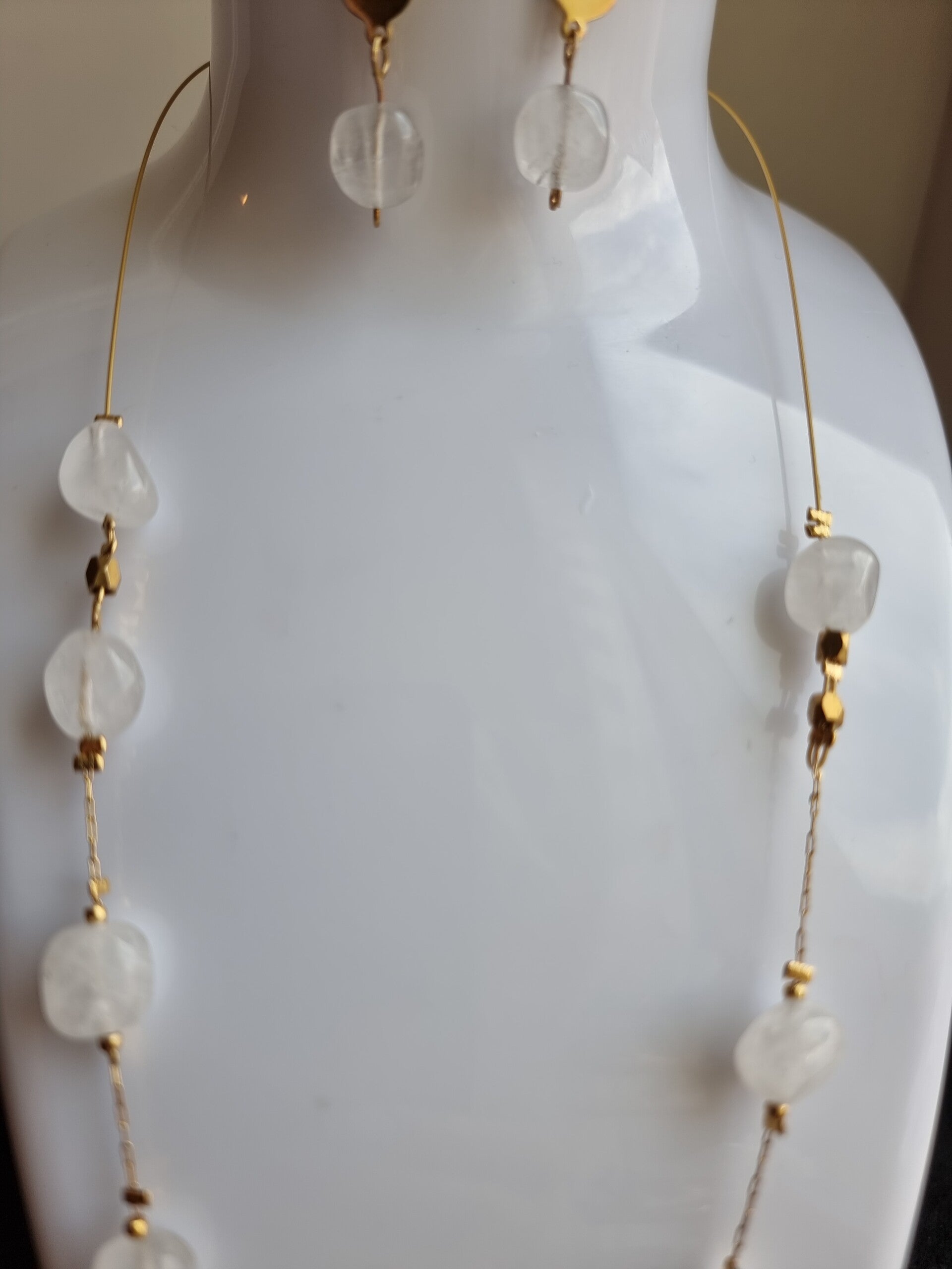 Collier en chaîne fine doré Or, pierre quartz blanc réf. mpi 60