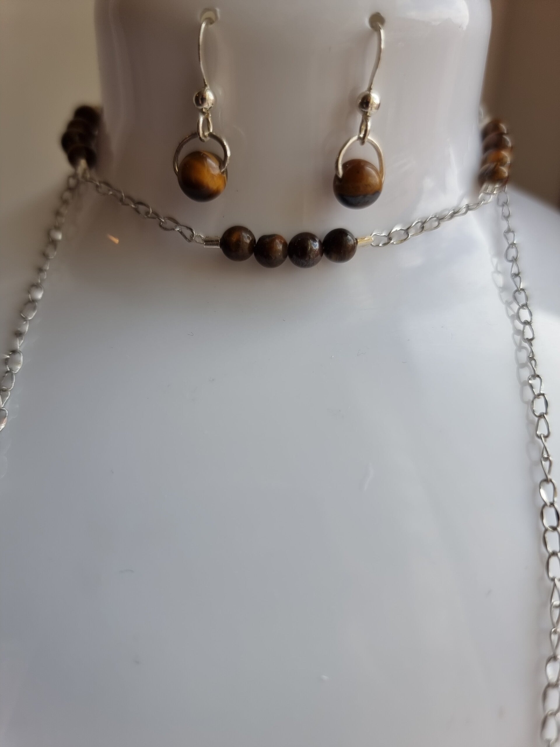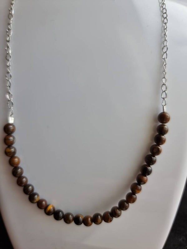 Chaine argentée pierre œil de tigre 4mm réf.mpi 58