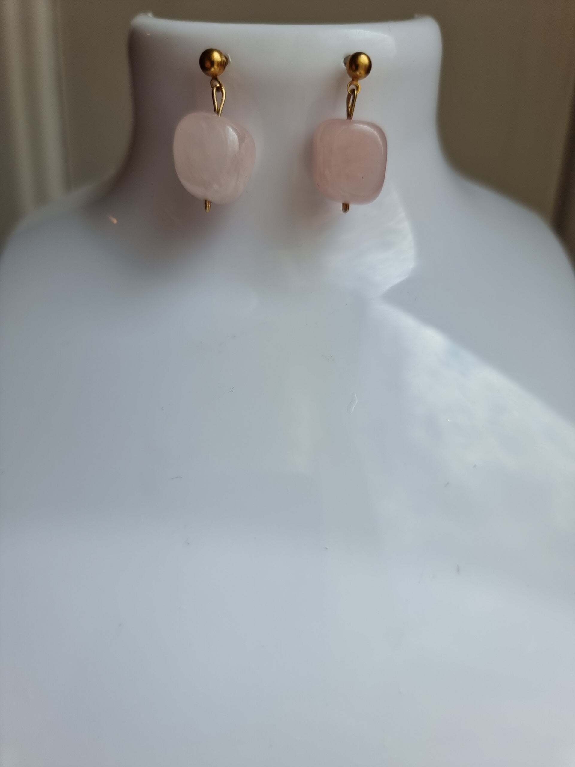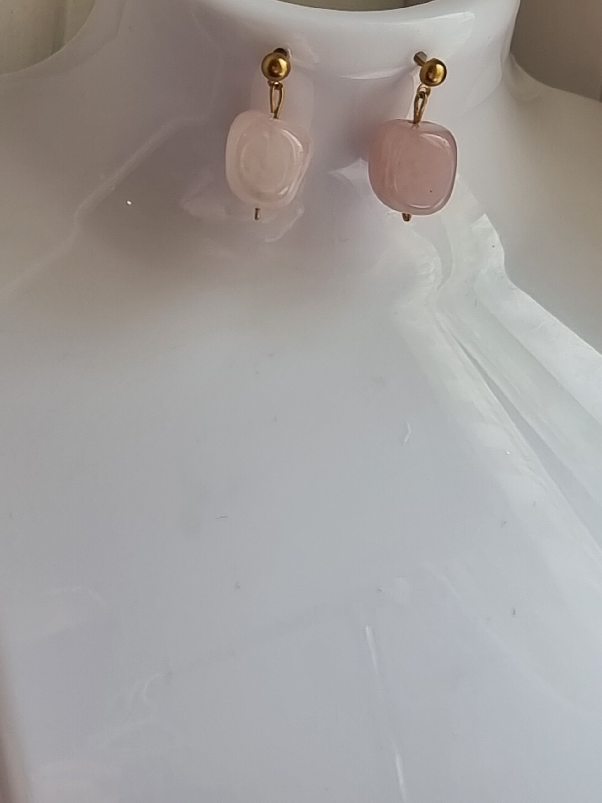 Boucles en pierre quartz rose ,crochet plaqué Or.ref mpi 24