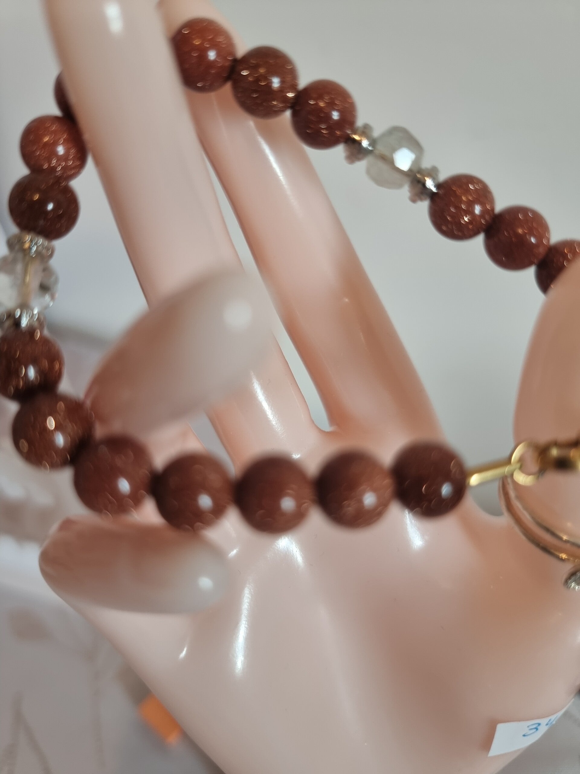 Bracelet pierre de soleil ,decoré quartz blanc.