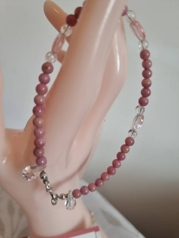 Bracelet pierre jaspe rose, decoré quartz rose ,finition quartz blanc