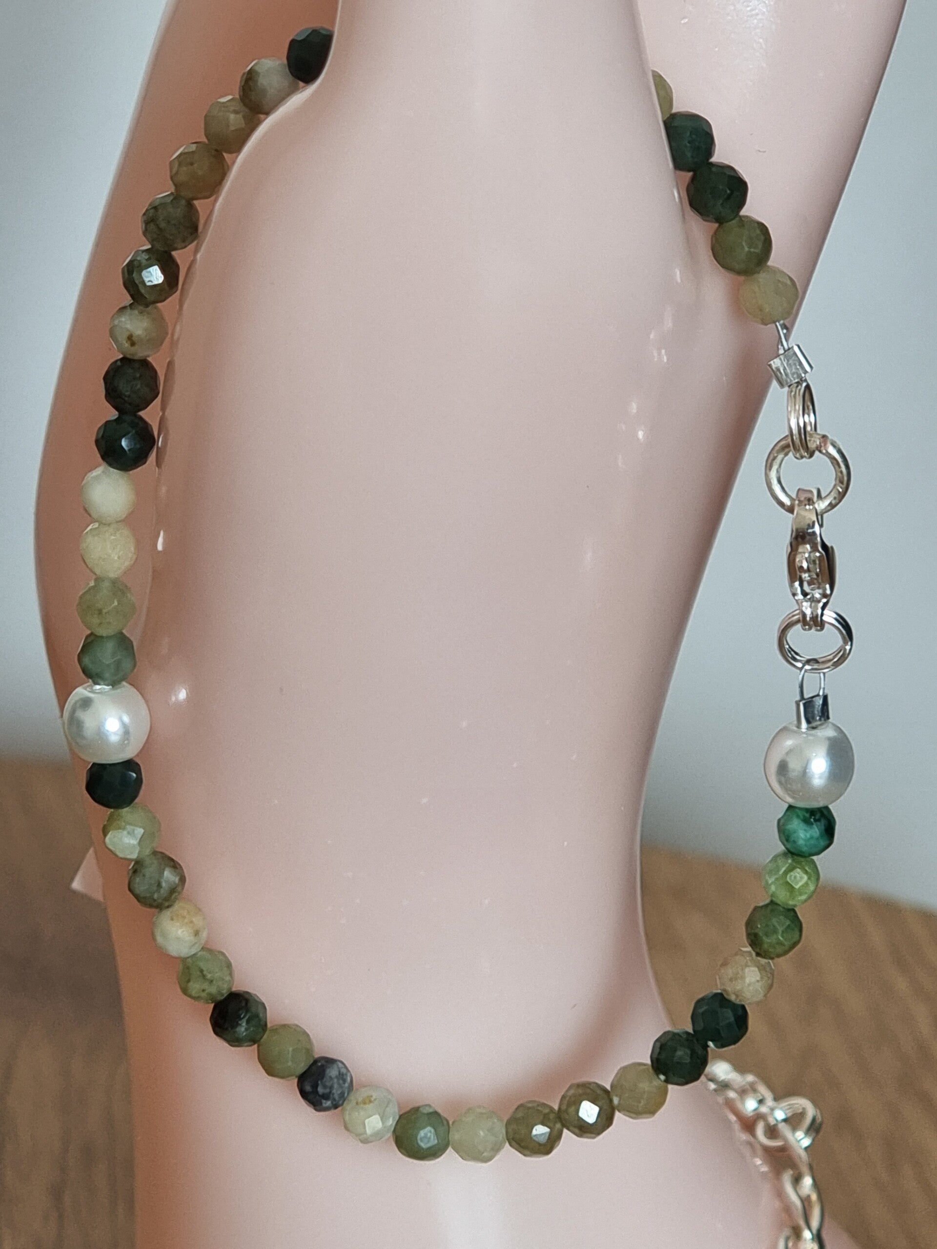 Bracelet en Jade Birmanie,4mm,decoré deux perles fermoir argent