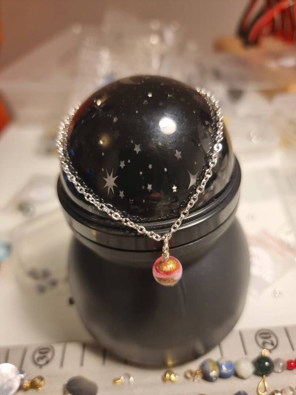 Bracelet en chaîne argent Rolo ,perle murano rose et or.